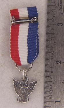 A miniature Eagle Scout Medal perfect for wear on a suit or Tux when going to a special event. Group this with other awards to show your time in scouting. The Medal is Sterling Silver.